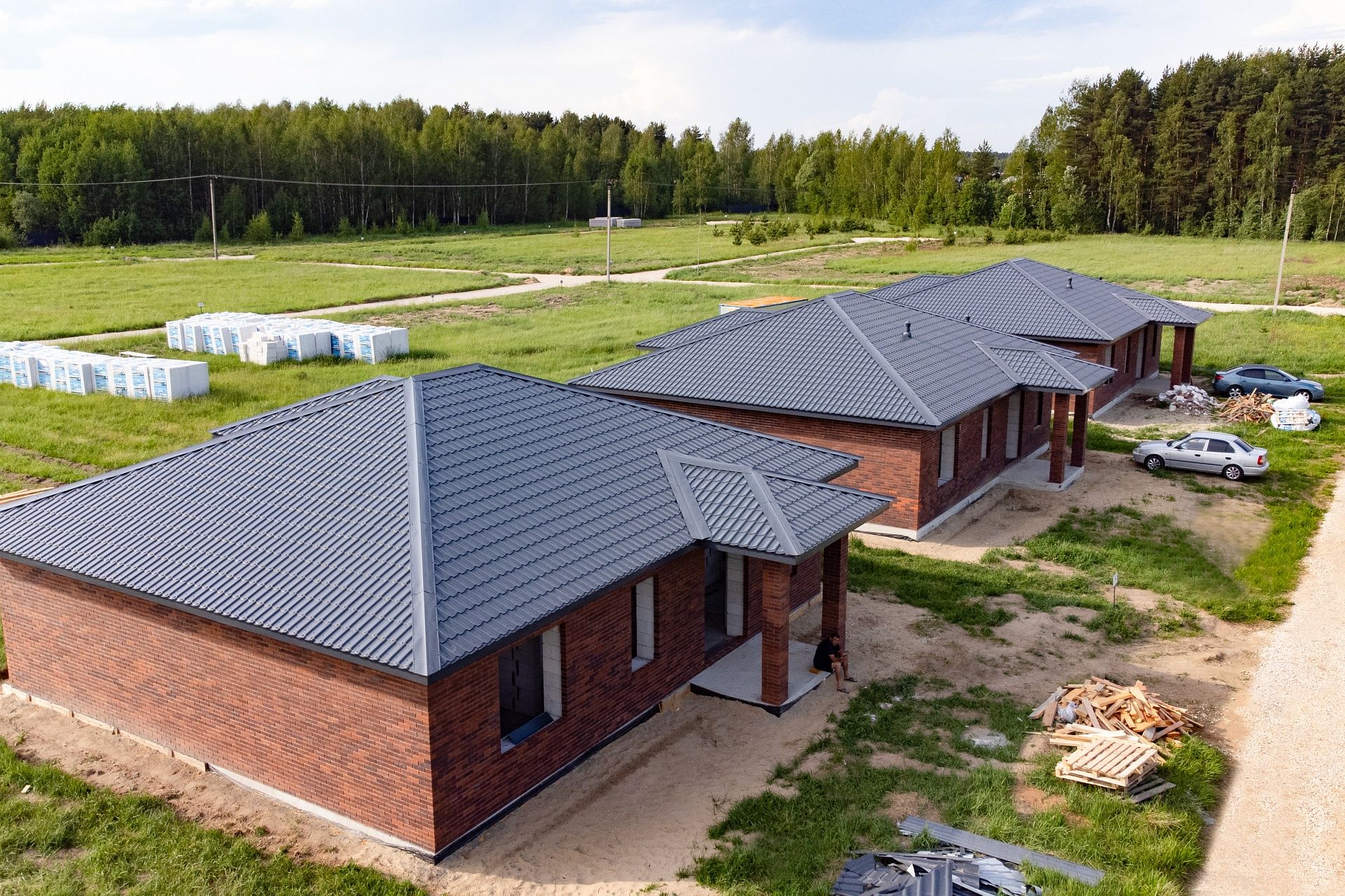 Для каждого участка установлен фасадный забор в едином стиле с калиткой и воротами, а так же высажены деревья.