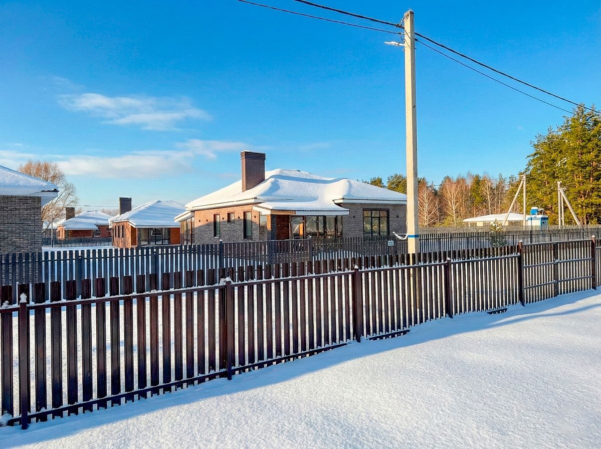 К дому уж подключены коммуникации: электричество (15 кВт), водопровод скважина, канализация септик. Участок будет огорожен забором, по фасаду евроштакетник в единой стилистике коттеджного посёлка.