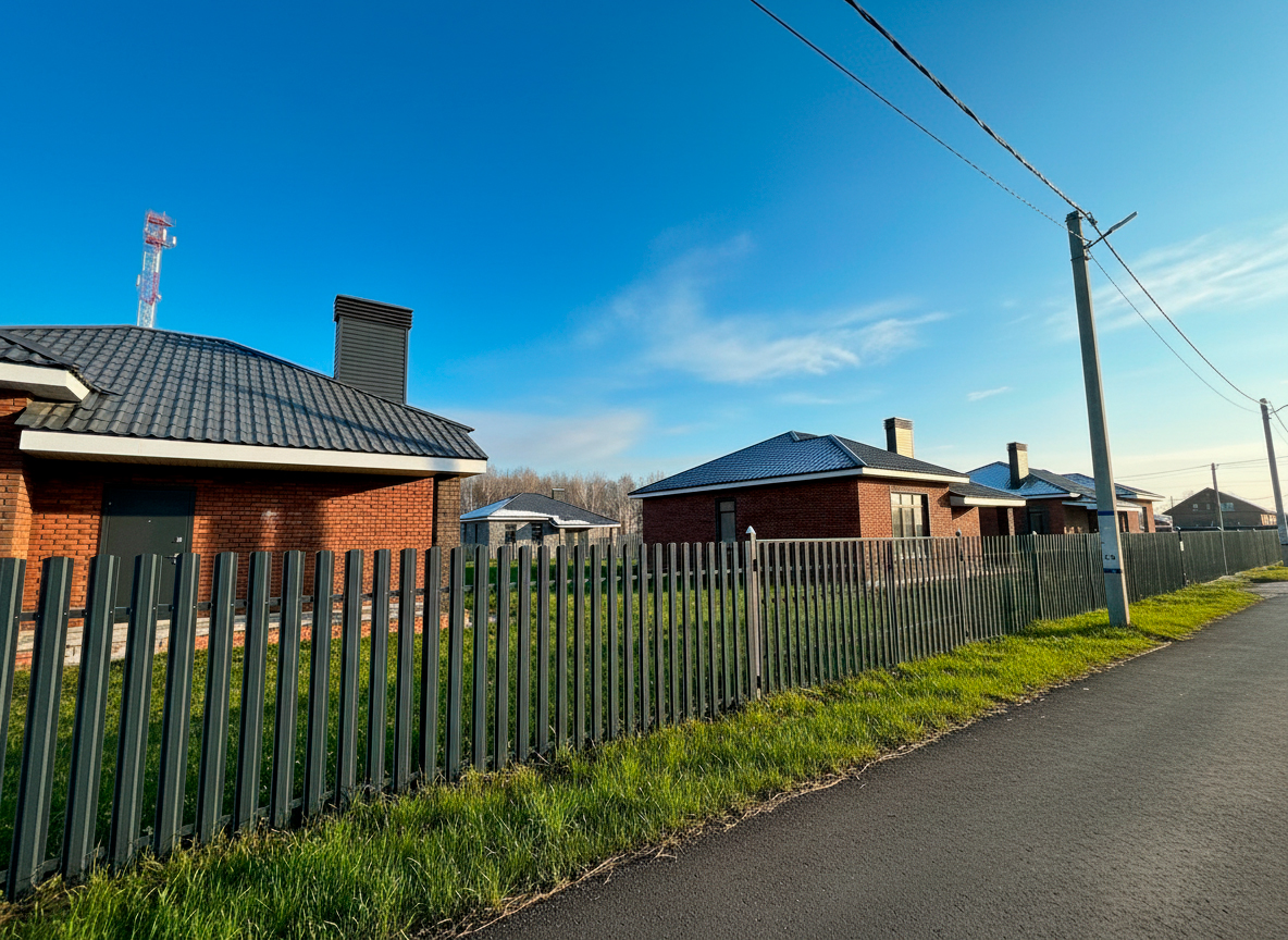 - по линии фасада устанавливается евроштакетник в общем стиле посёлка.