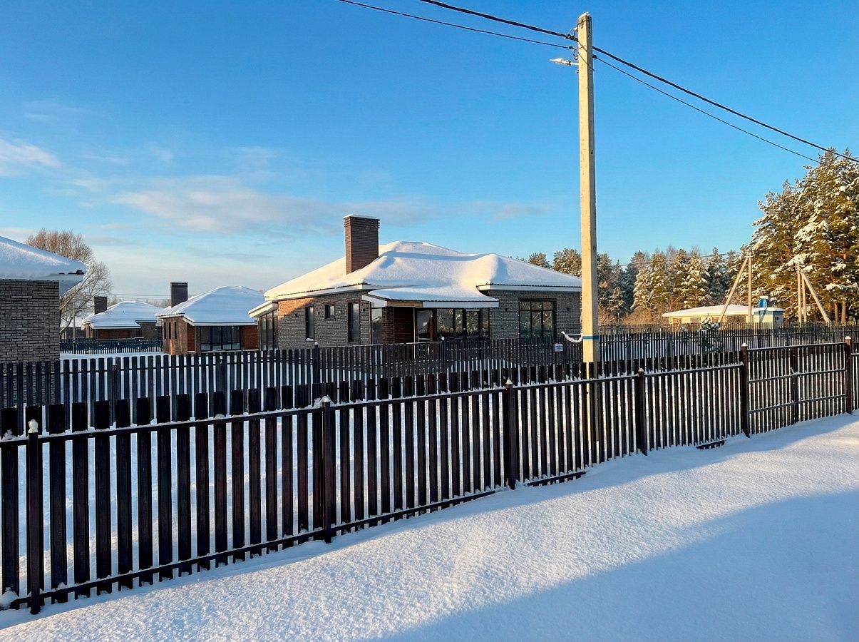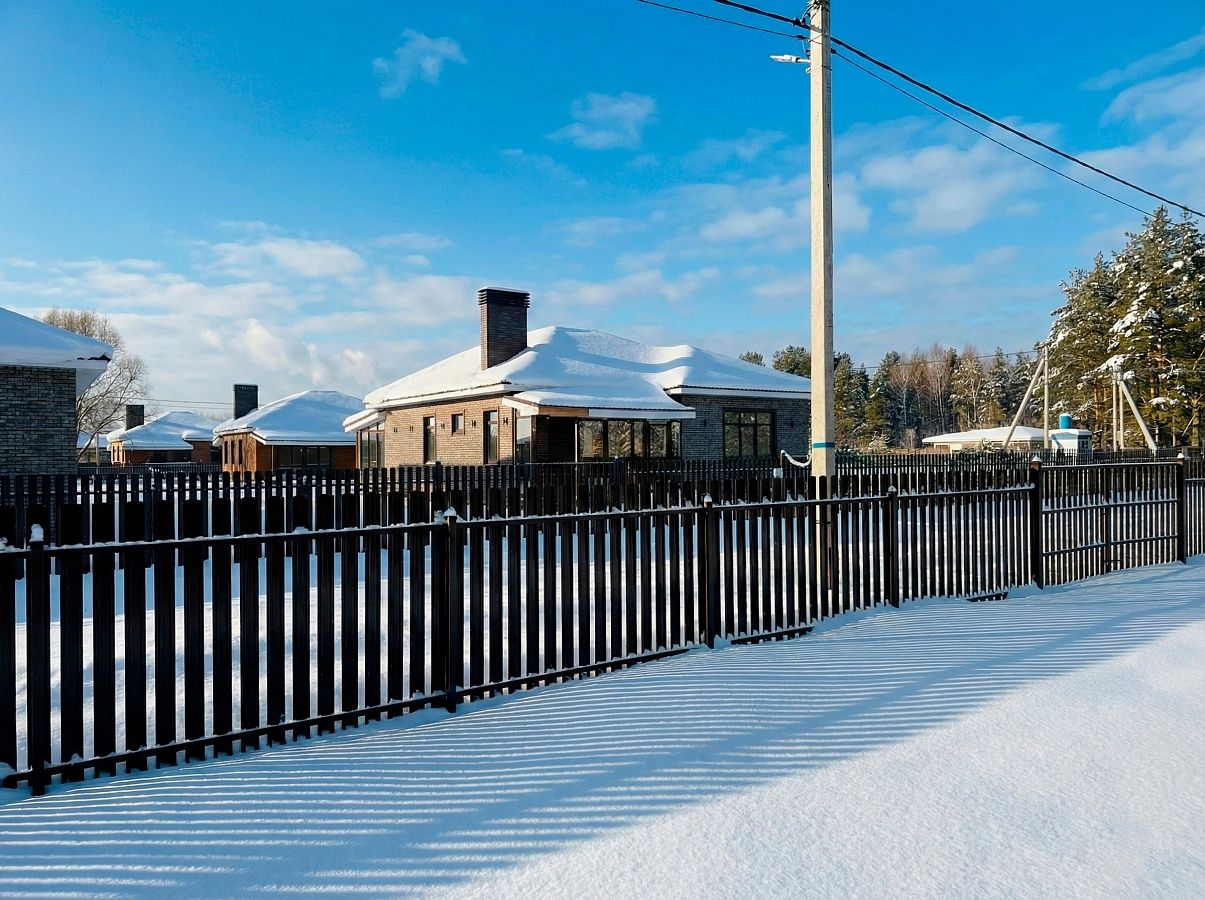 К дому уже подключены коммуникации: электричество (15 кВт), водопровод скважина, канализация септик. По фасаду участка - евроштакетник в единой стилистике коттеджного посёлка.