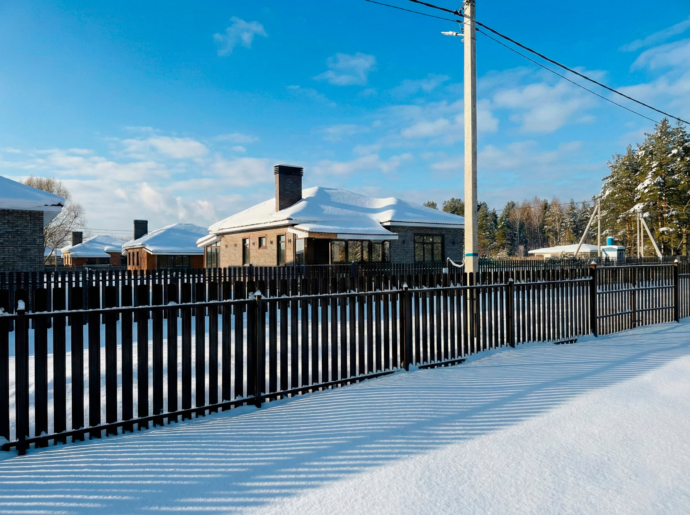 - Территорию поселка обслуживает УК, охрана, видеонаблюдение, чистка дорог зимой, уборка территории;