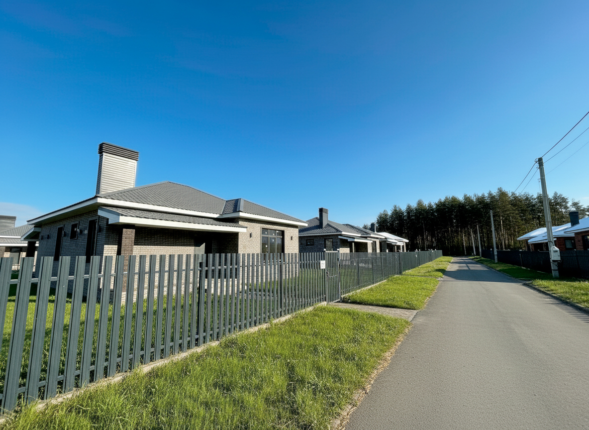 - по линии фасада устанавливается евроштакетник в общем стиле посёлка.