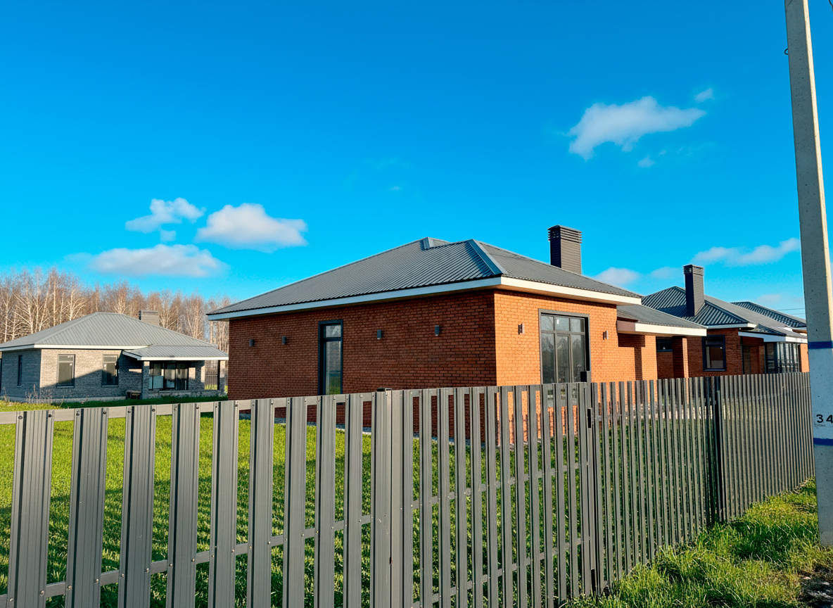 К дому уже подключены коммуникации: электричество (15 кВт), водопровод скважина, канализация септик. По фасаду участка - евроштакетник в единой стилистике коттеджного посёлка.