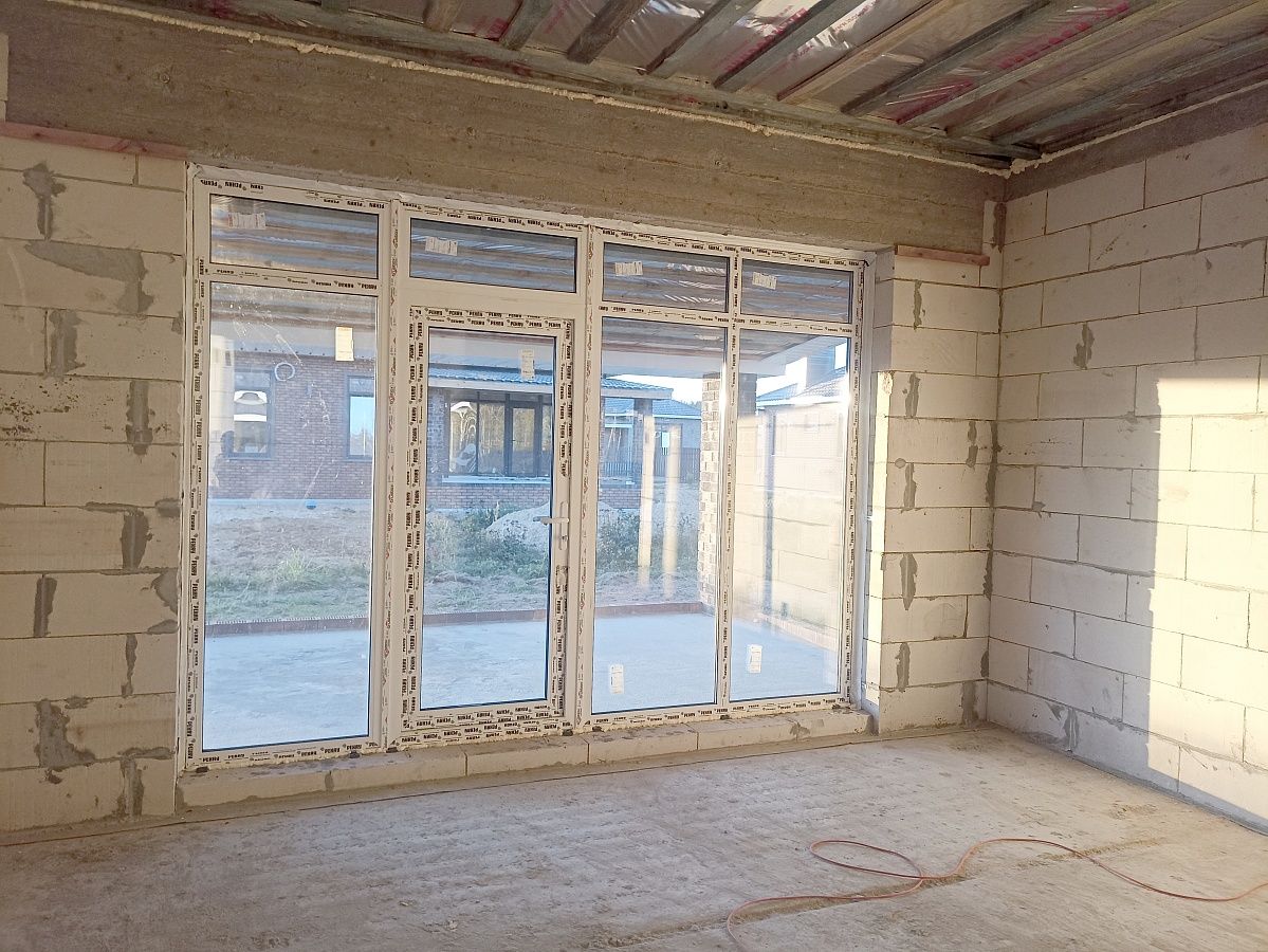 К дому будут подключены коммуникации: электричество (15 кВт), водопровод скважина, канализация септик. По фасаду участка - евроштакетник в единой стилистике коттеджного посёлка.
